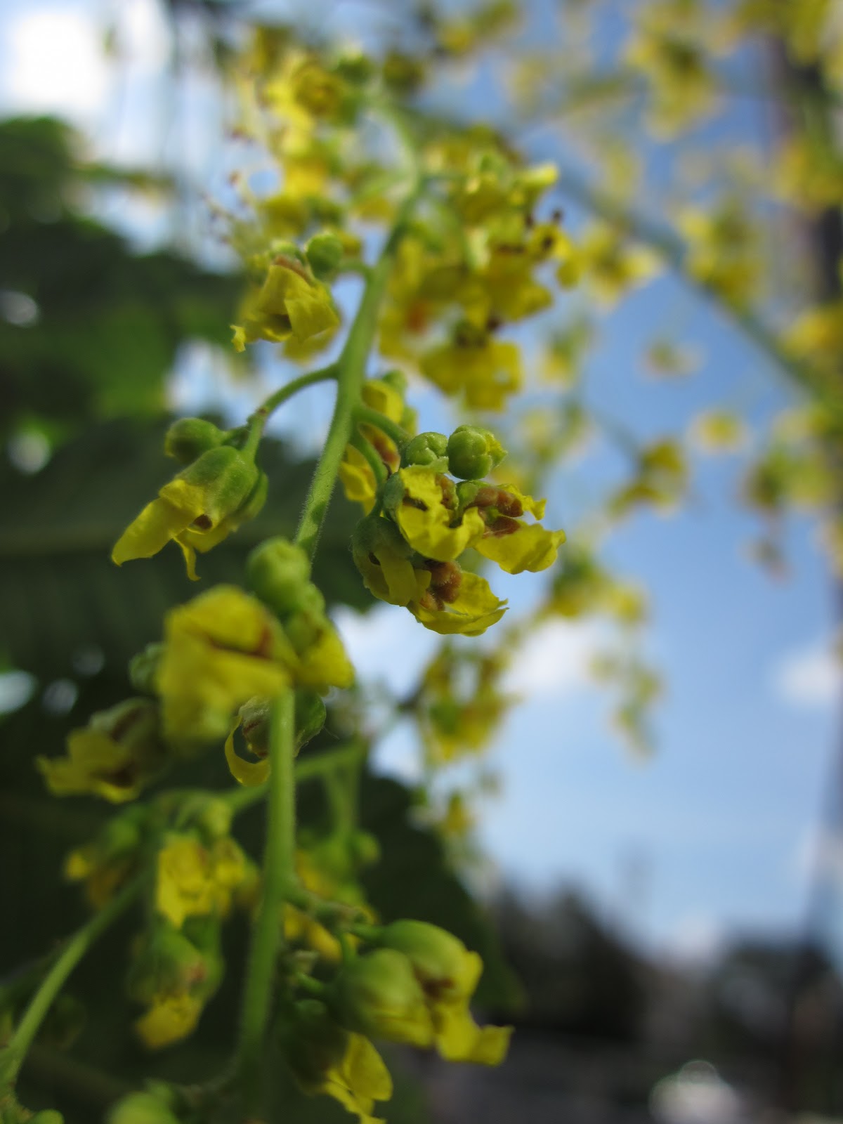 The goldenrain tree in my backyard is blooming and I had no clue that its presence is thanks to seeds from Thomas Jefferson. A French Jesuist priest visited China in the 18th century and brought the seeds back to Paris. From there a French friend of Thomas Jefferson gave him seedlings that naturalized in Monticello. The tree has boughs of small yellow flowers that look like orchids that turn into seed pods that resemble Chinese lanterns.