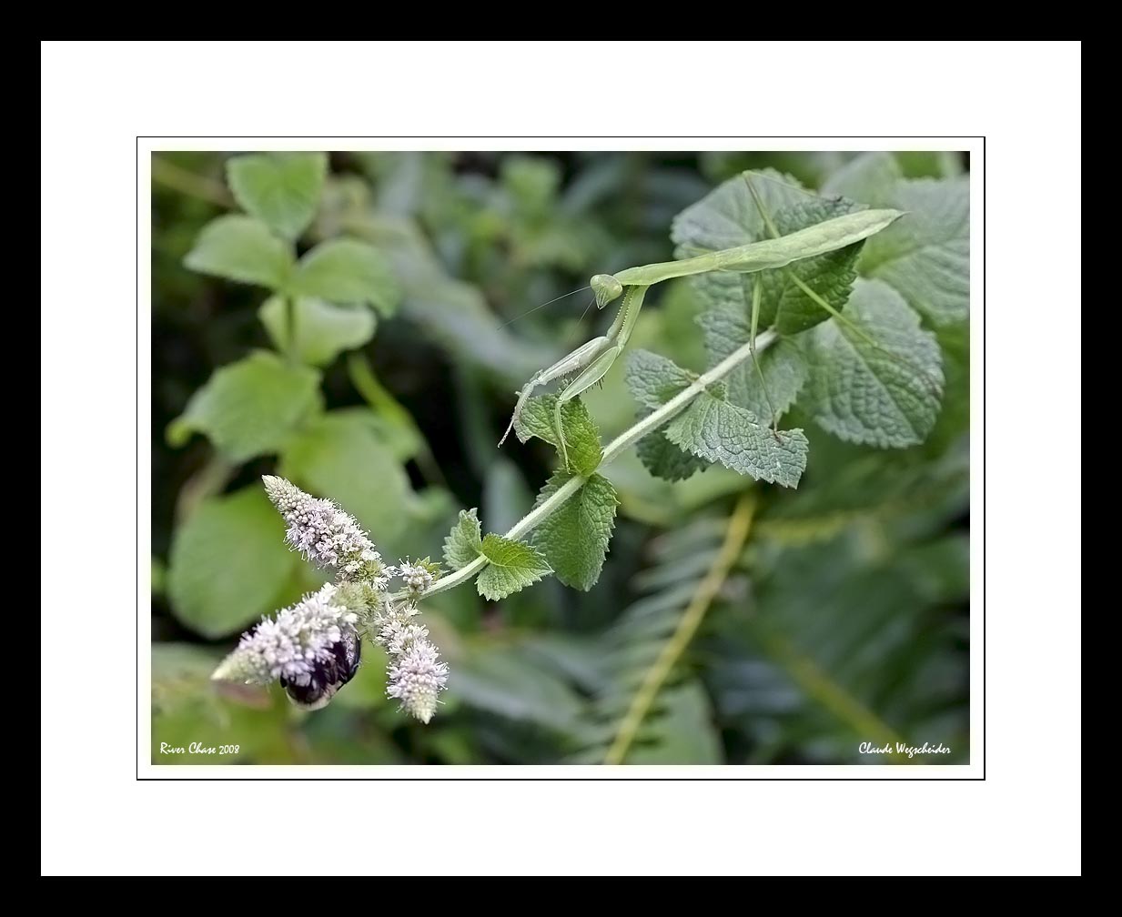 My friend Claude took this photo of a preying mantas and bee on mint. Mint would devour my backyard if I let it. The first thing that comes to my mind when I think of mint is weed…. or tea. However, upon researching it I am amazed to see that the dried leaves were found in Egyptian pyramids in 1000 B.C. which makes me wonder if it was used for embalming and I can’t find the answer.