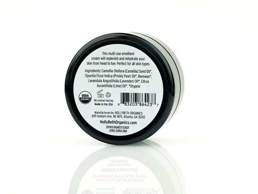 While living in Mexico and throughout Latin America, HollyBeth learned the curative powers of prickly pear seed, the key ingredient in her Skin Therapy. Full of Vitamin E and fatty acids that protect the skin as well as increase elasticity, prickly pear seed oil is a new ingredient in her repertoire. It takes approximately 300 seeds to make one ounce of oil! Coupled with camellia oil and infused with lavender and lime essential oils, this makes for a timeless classic that will be your go to cream. In a violet glass jar this fits easily in a purse.